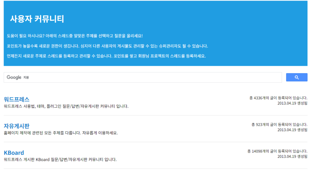특별한 기능을 제외하고는 기본 게시판은 개인이나 기업 모두에게 무료로 제공되고 있습니다.